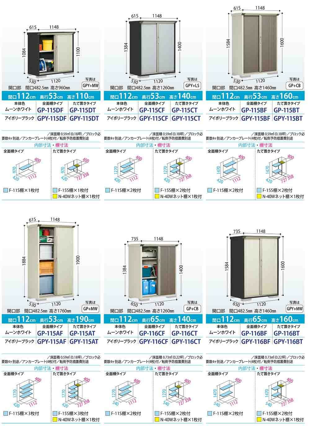グランプレステージ ジャンプ 小型物置 GP-115BF 全面棚タイプ 間口1120×奥行530×高さ1600