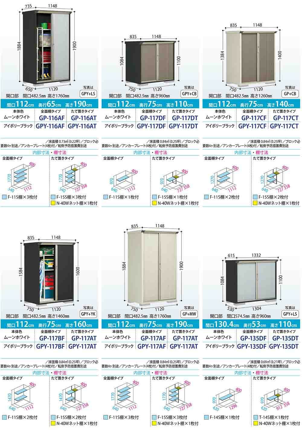グランプレステージ ジャンプ 小型物置 GP-117AF 全面棚タイプ 間口1120×奥行750×高さ1900