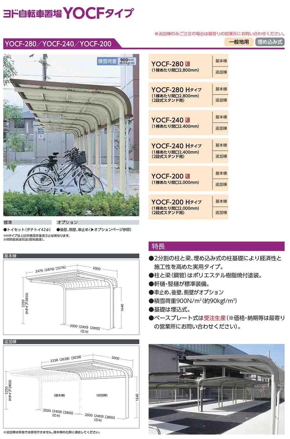 ヨド自転車置場 YOTC-280 基本棟 YOTCタイプ 一般型 間口2800×奥行2025×高さ2204