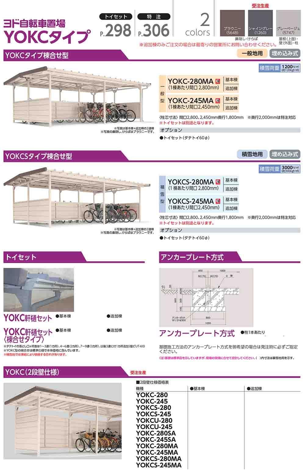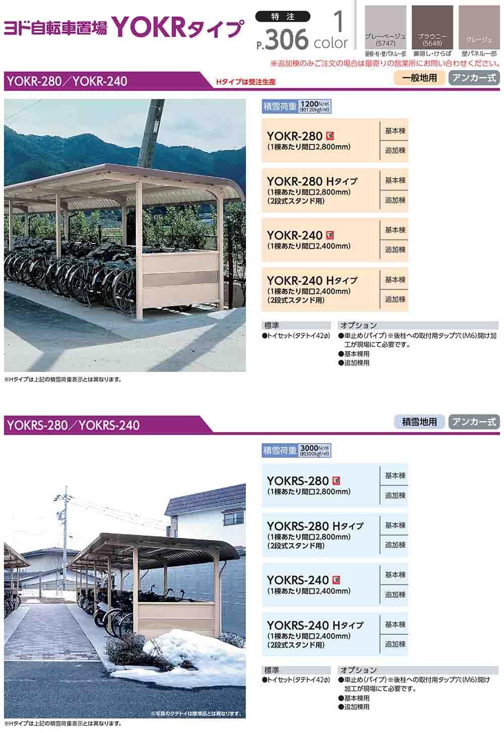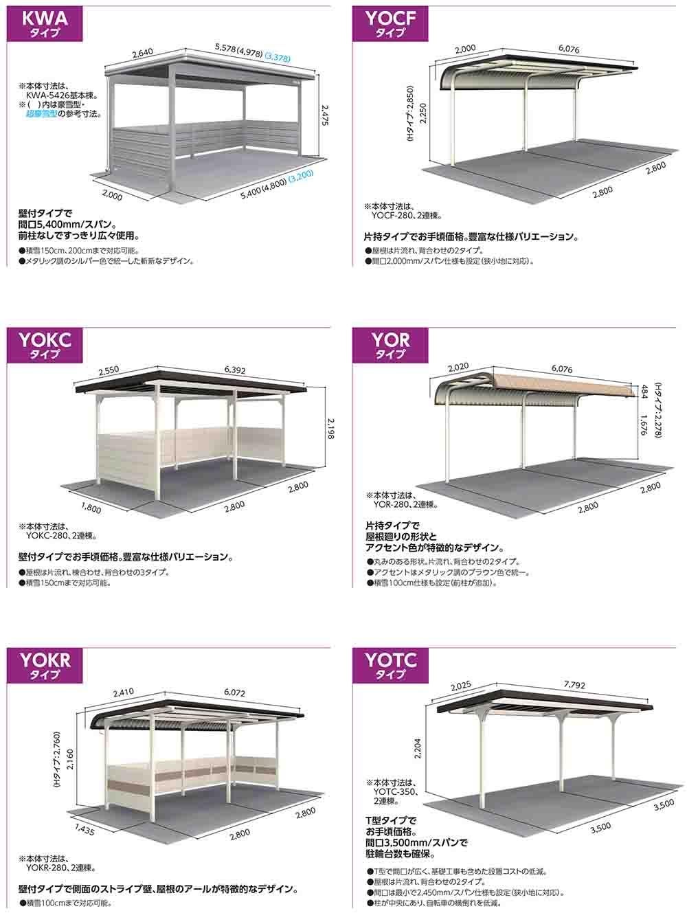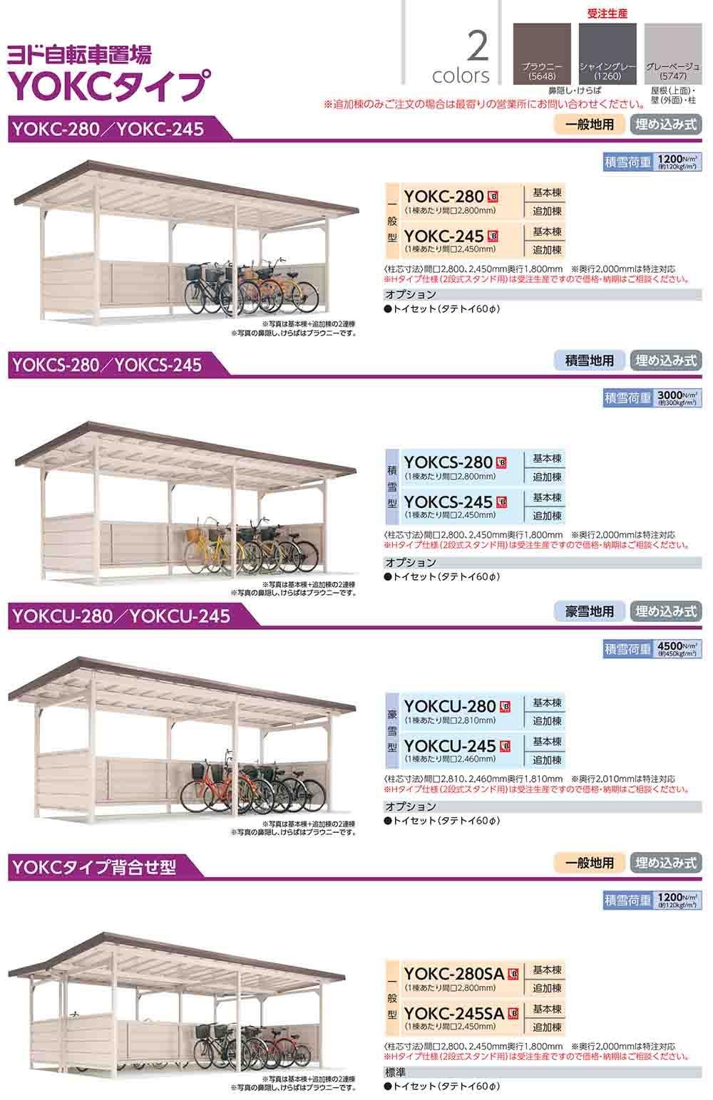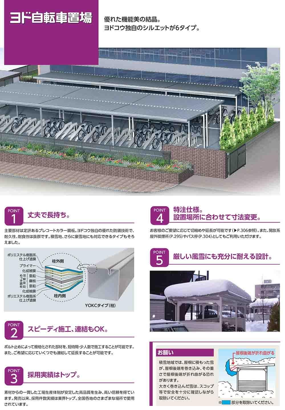 ヨド自転車置場 YOKCS-280MA 基本棟 YOKCタイプ棟合せ型 積雪型 間口2800×奥行3600×高さ2198