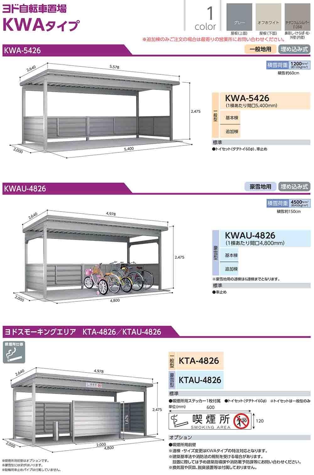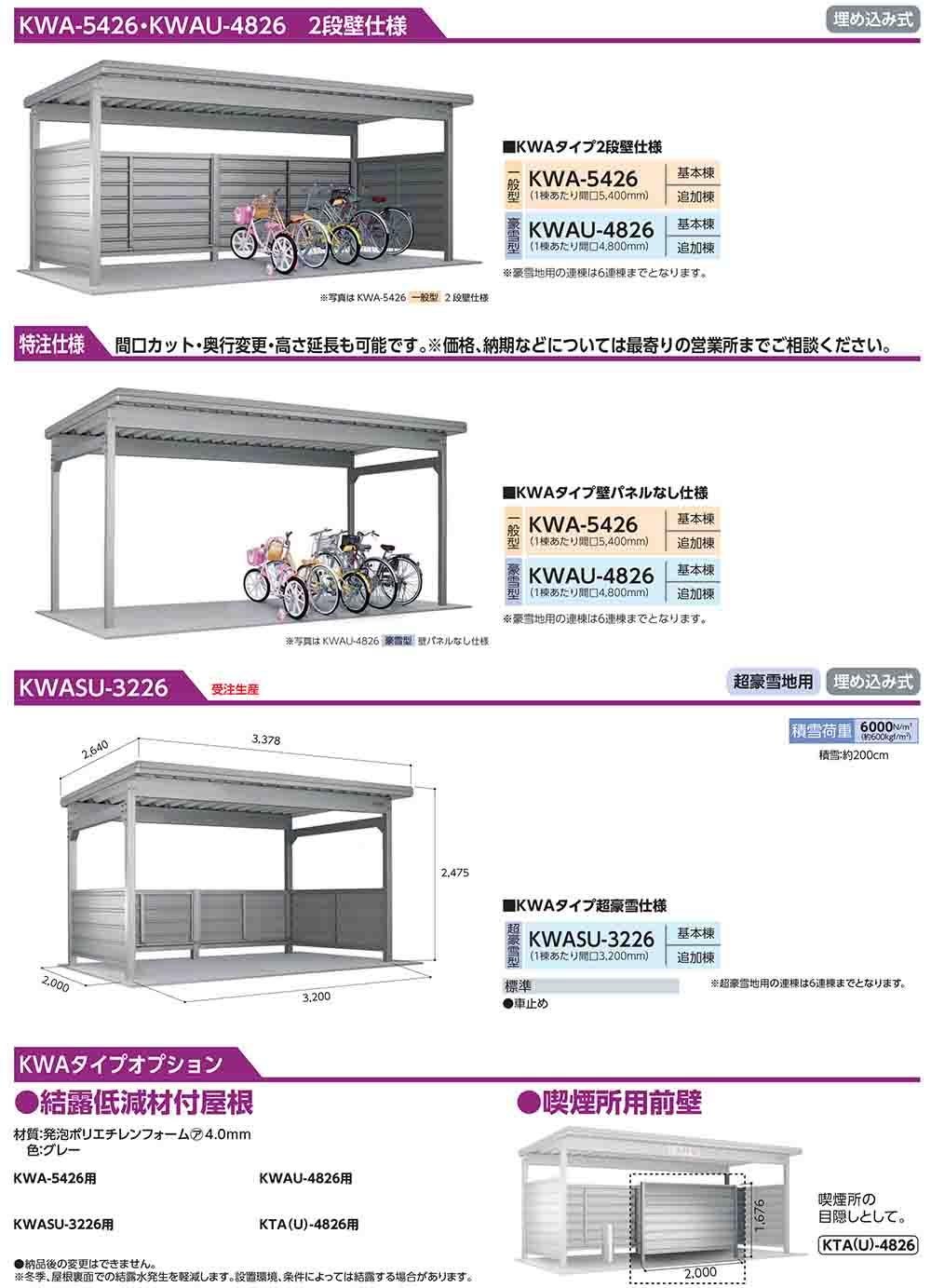 ヨド自転車置場 KWASU-3226 追加棟 KWAタイプ 超豪雪型 間口3200×奥行2000×高さ2475