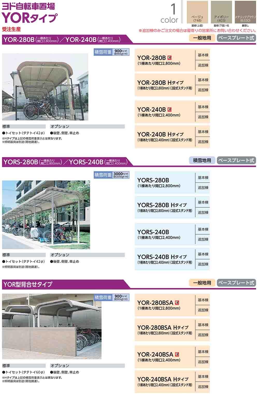ヨド自転車置場 YOR-280B 基本棟 YORタイプ 一般型 間口2800×奥行2020×高さ2160