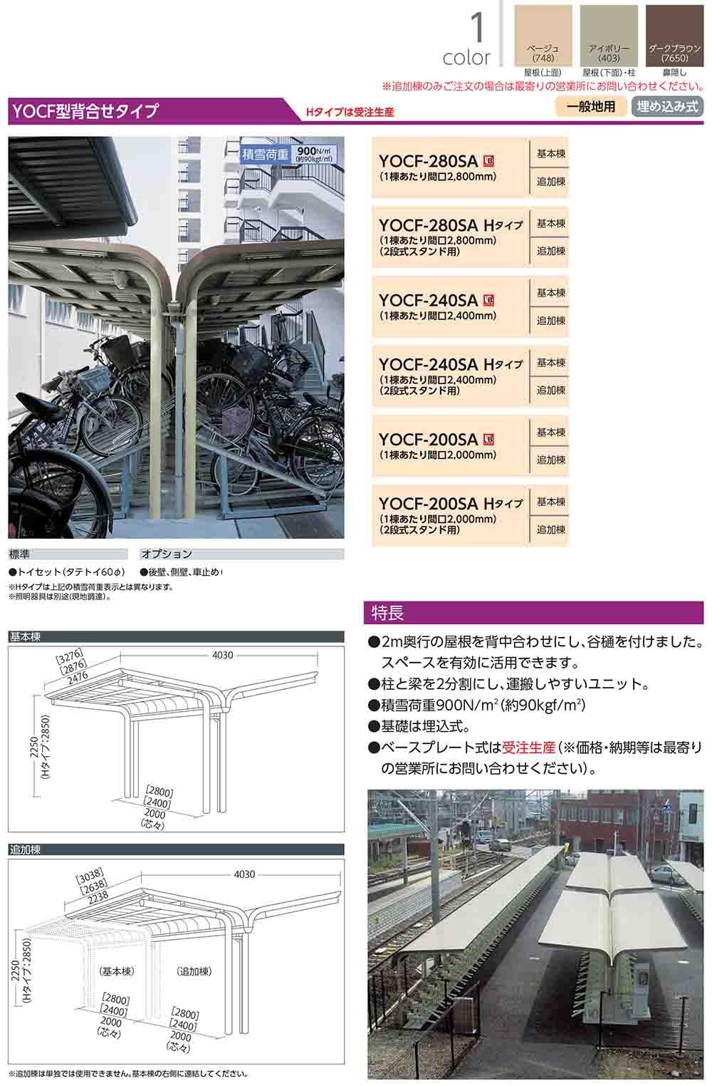 ヨド自転車置場 YOCF-280SA 追加棟 YOCF型背合せタイプ 一般型 間口2800×奥行4000×高さ2250
