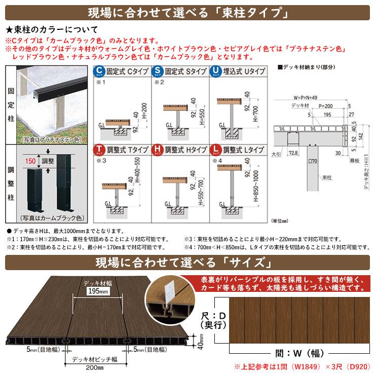YKKap リウッドデッキ S EG 基本セット 調整柱 Lタイプ(高さ:H850~1000mm)×5尺(奥行:D1520mm)×1間(間口:W1849mm)
