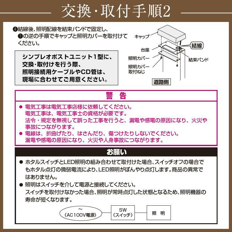 デザインポストユニット 1型 照明付き(100V照明)本体 T12型ポスト セット 前入れ前出し
