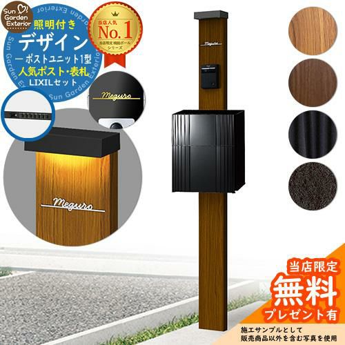 デザインポストユニット 1型 照明付き本体 P-1型ポスト Limia表札 セット 前入れ前出し