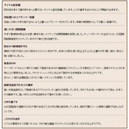 カラー:ダークアッシュ 郵便ポスト 郵便受け Deas Garden 傳來工房 おしゃれ かわいい ウッド風