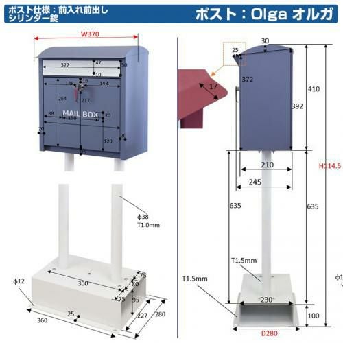 MOJYU モジュ ポール式 ポスト 鍵付き