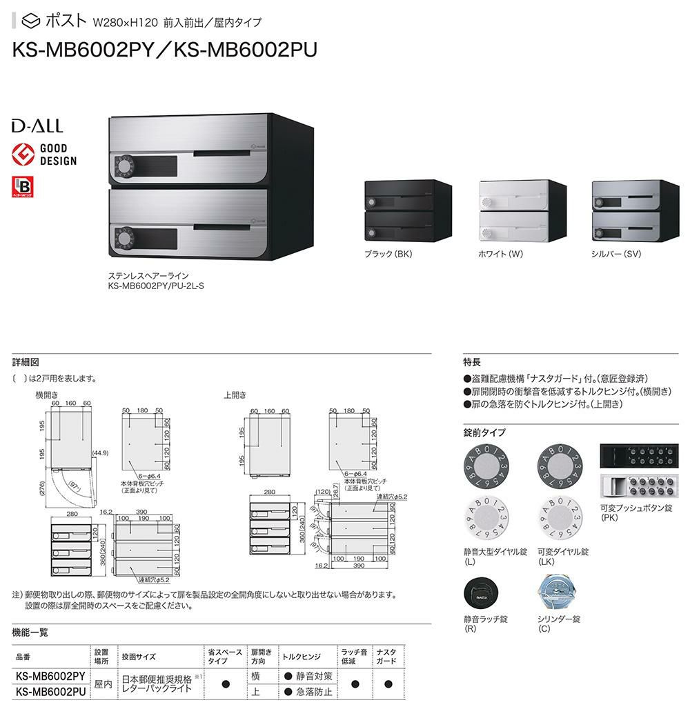 D-ALL 集合住宅用ポスト KS-MB508S-PK 可変プッシュボタン錠 前入れ前出し 1戸用