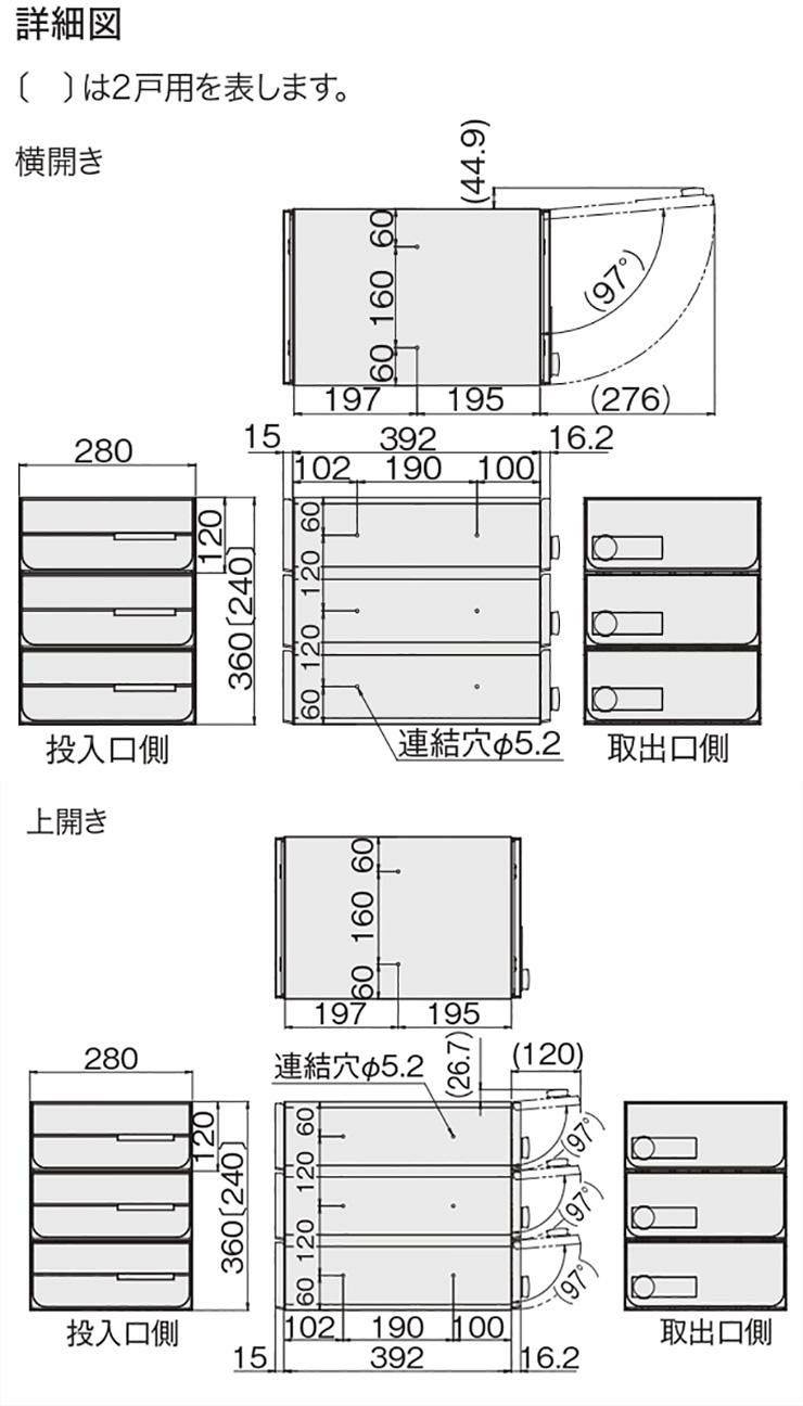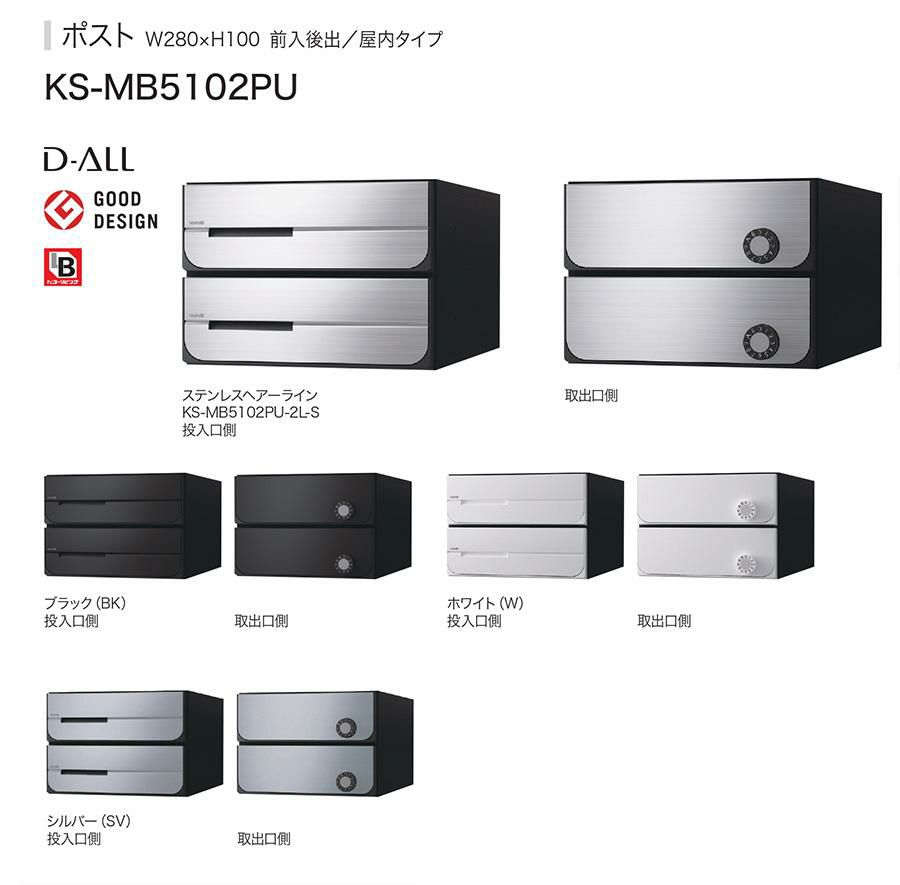 D-ALL 集合住宅用ポスト KS-MB5102PU-2LK 可変ダイヤル錠 前入れ後出し 2戸用