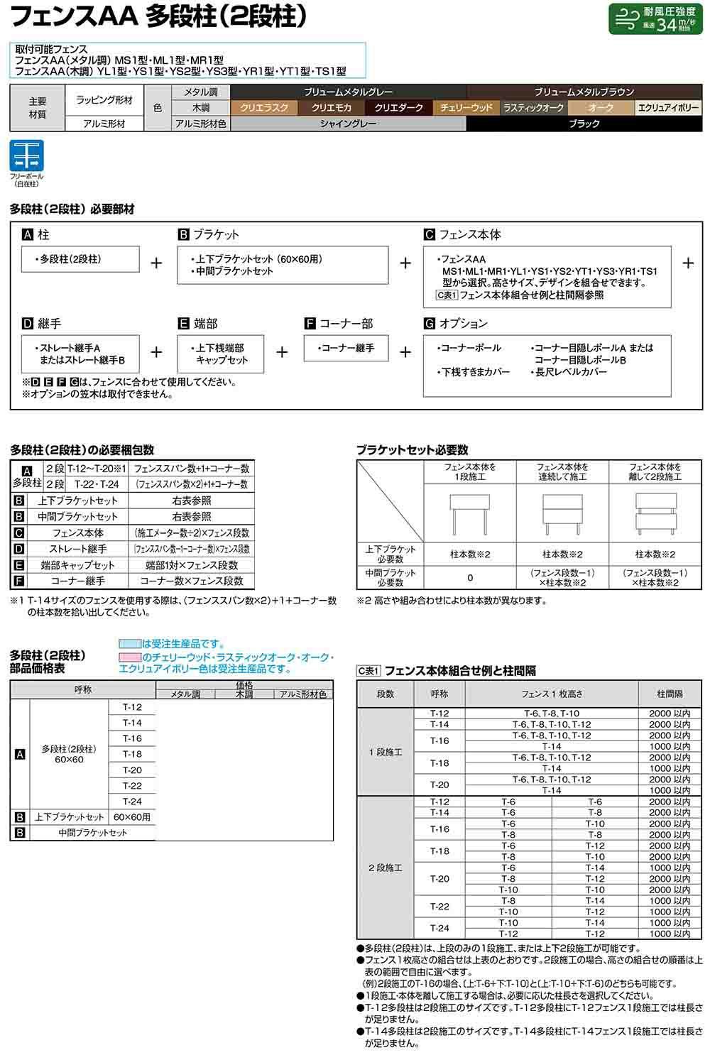 LIXIL フェンスAA 多段柱(2段柱)