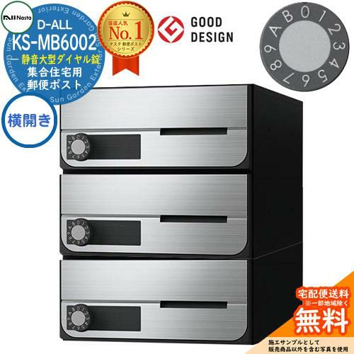 D-ALL 集合住宅用ポスト KS-MB4002PY-3LK 横開き 可変ダイヤル錠 前入れ前出し 3戸用