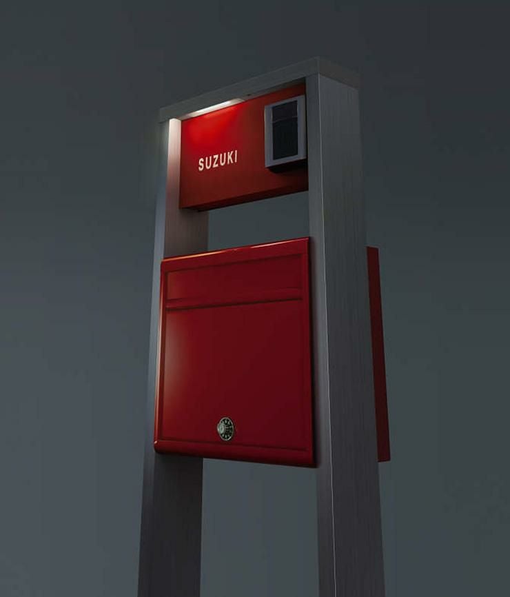 ポール本体+表札+ポスト(前入れ前出し・プッシュ錠仕様)