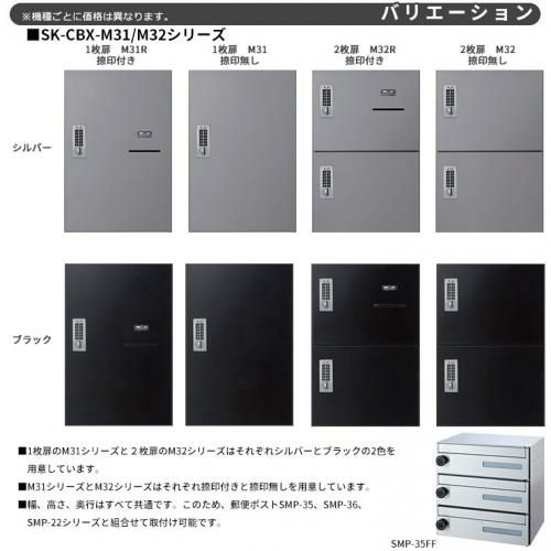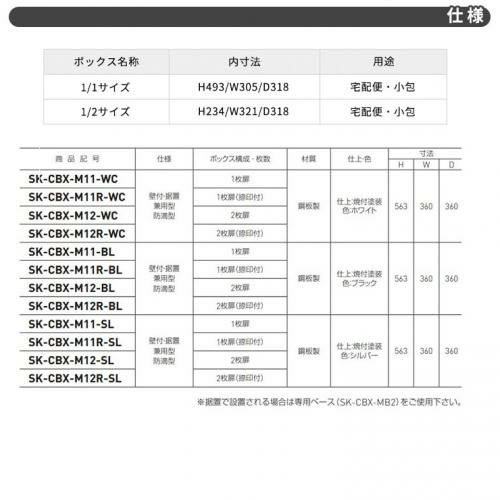 SK-CBX-M11R-SL 捺印付き シルバー 防滴 1枚扉 奥行き360mm 電池式テンキータイプ スチール製 半屋外用