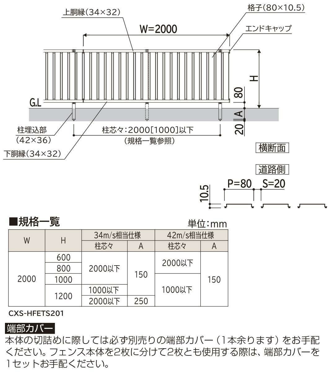 シンプレオフェンスTS2型 H1200タイプ(T120) 専用 フェンス下すき間隠し(80)用 端部キャップ UFE-KS3