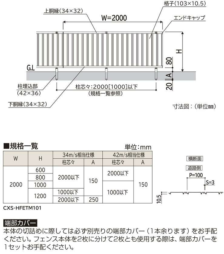 シンプレオフェンスTM1型 H1000タイプ(T100) 専用 フェンス下すき間隠し(80)用 端部キャップ UFE-KS3