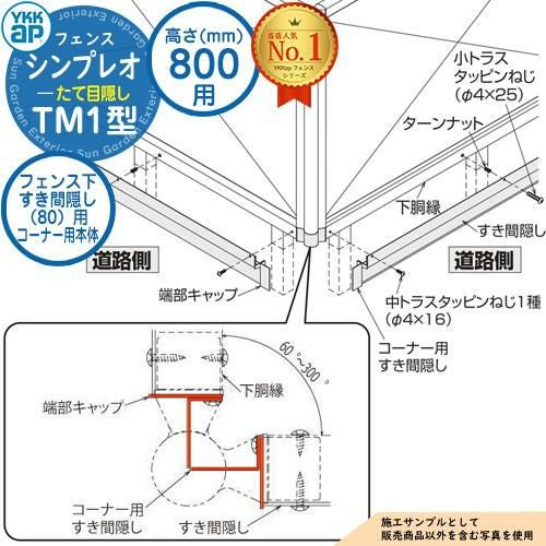 シンプレオフェンスTM1型 H800タイプ(T80) 専用 コーナー部品 目隠しコーナー継手(60度~300度)