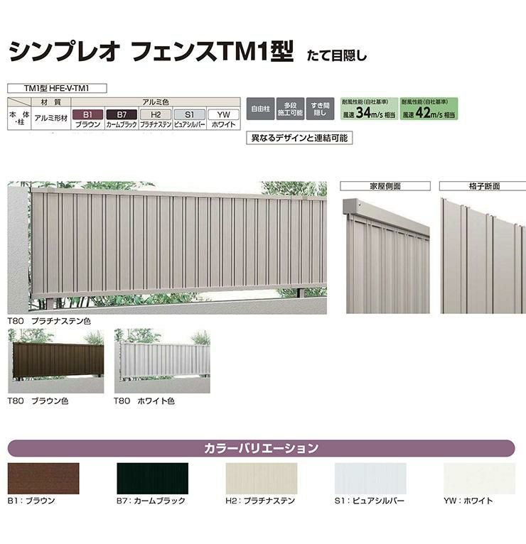 シンプレオフェンスTM1型 H1200タイプ(T120) 専用 ポール 自由柱+胴縁固定金具セット(耐風性能34m/秒相当)