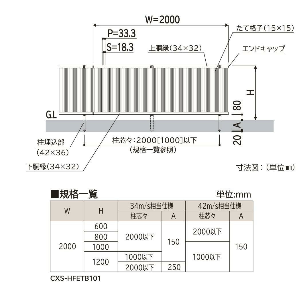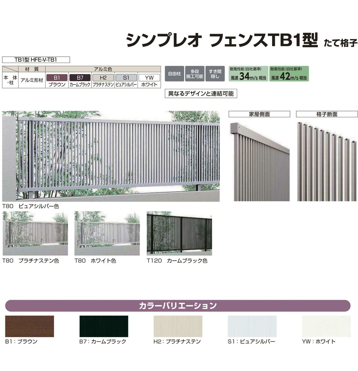 シンプレオフェンスTB1型 H1200タイプ(T120) 専用 ポール 自由柱+胴縁固定金具セット(耐風性能34m/秒相当)