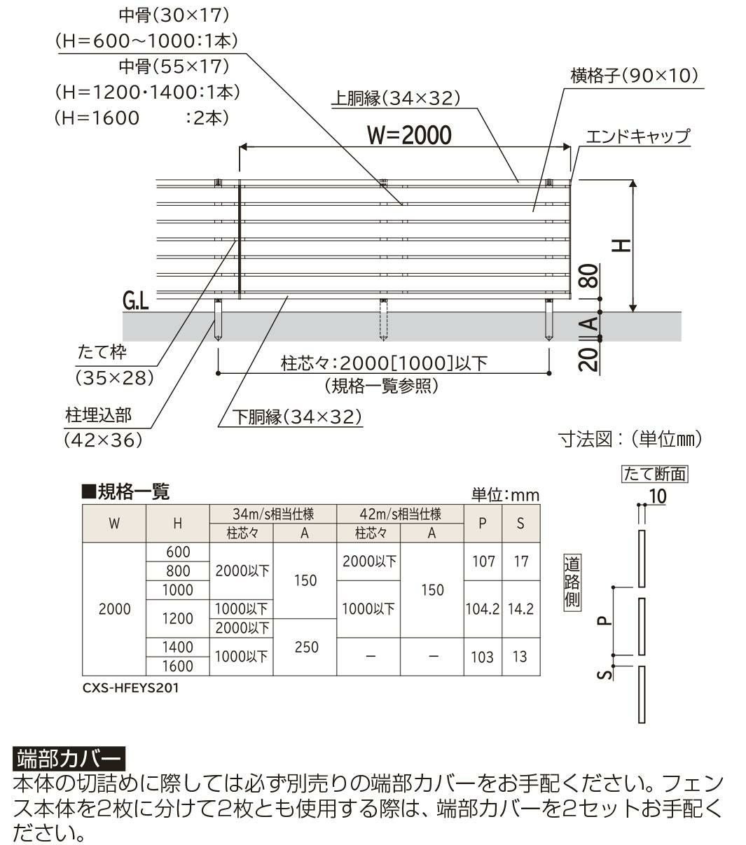 シンプレオフェンスYS2型 H800タイプ(T80) 専用 フェンス下すき間隠し(80)用 端部キャップ UFE-KS3