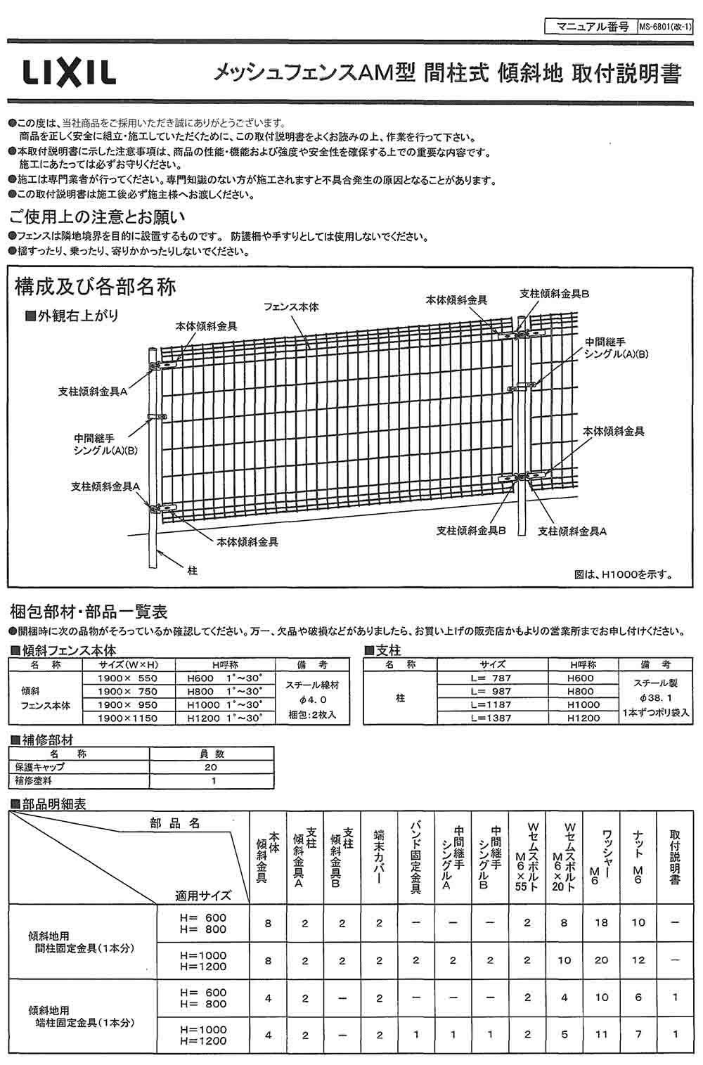 メッシュフェンス AM型(間柱) 傾斜タイプ