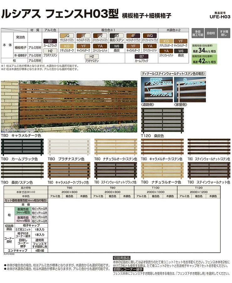 ルシアスフェンスH03型 H1200タイプ(T120) 専用 フェンス下すき間隠し(80)用 コーナー用本体(L=2110) 木調カラー UFE-KS1-20K