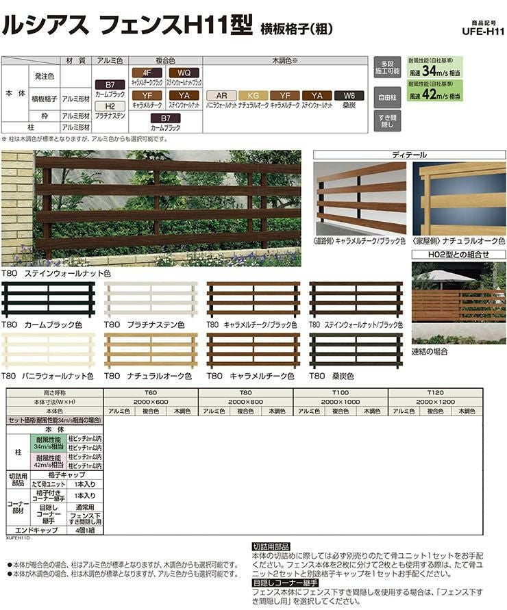 ルシアスフェンスH04型 H1000タイプ(T100) 専用 フェンス下すき間隠し(80)用 コーナー用本体(L=2110) 木調カラー UFE-KS1-20K