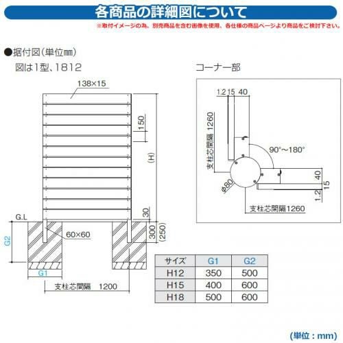 ルシアスフェンスH01型 H1200タイプ(T120) 専用 フェンス下すき間隠し(80)用 コーナー用本体(L=2110) アルミカラー UFE-KS1-20K