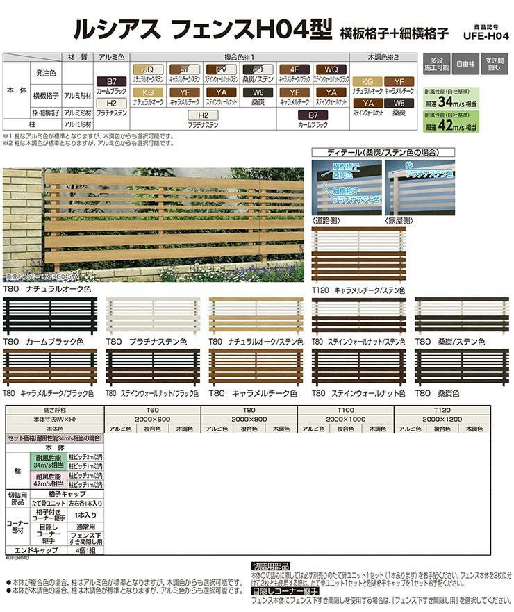 ルシアスフェンスH04型 H1200タイプ(T120) 専用 フェンス下すき間隠し(80)用 コーナー用本体(L=2110) 木調カラー UFE-KS1-20K