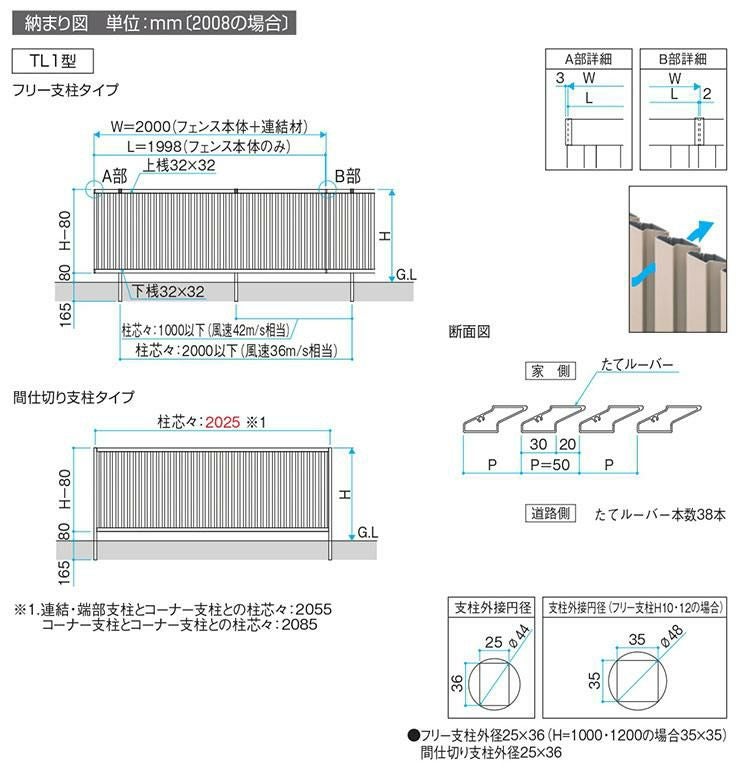 シンプレオフェンスM2型 H1000タイプ(T100) 専用 フェンス下すき間隠し(80)用 コーナー用本体(L=2110) UFE-KS1-20K
