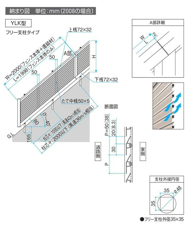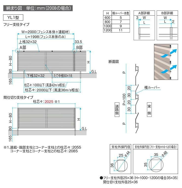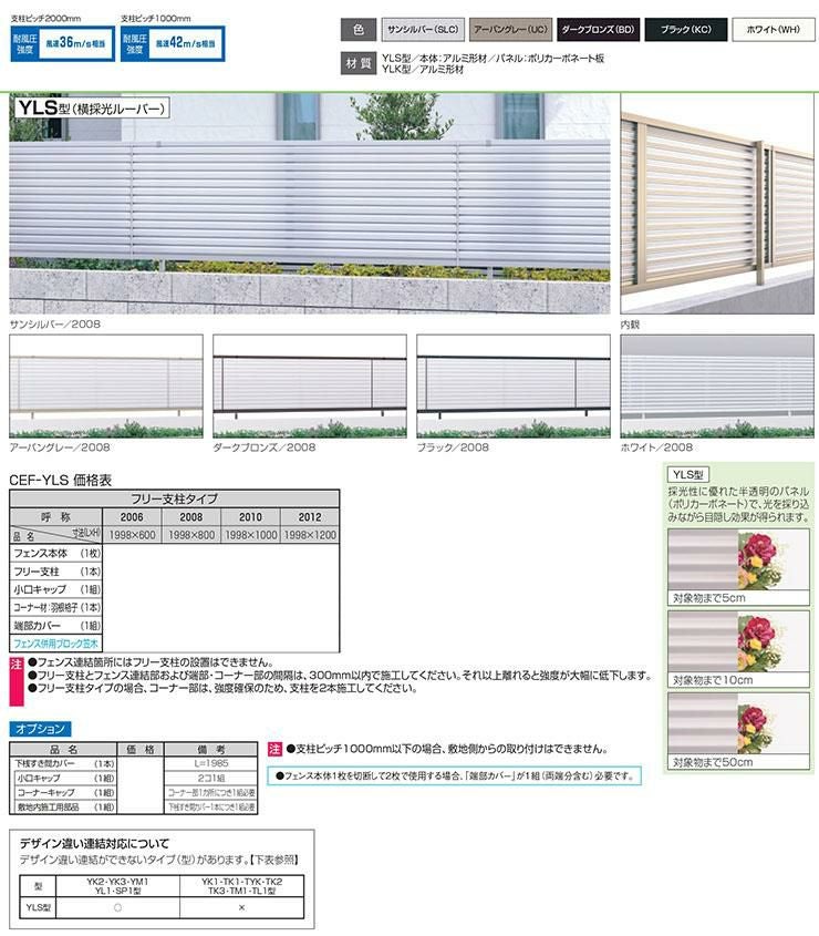 YLK型(横ルーバー傾斜地用) 専用オプション