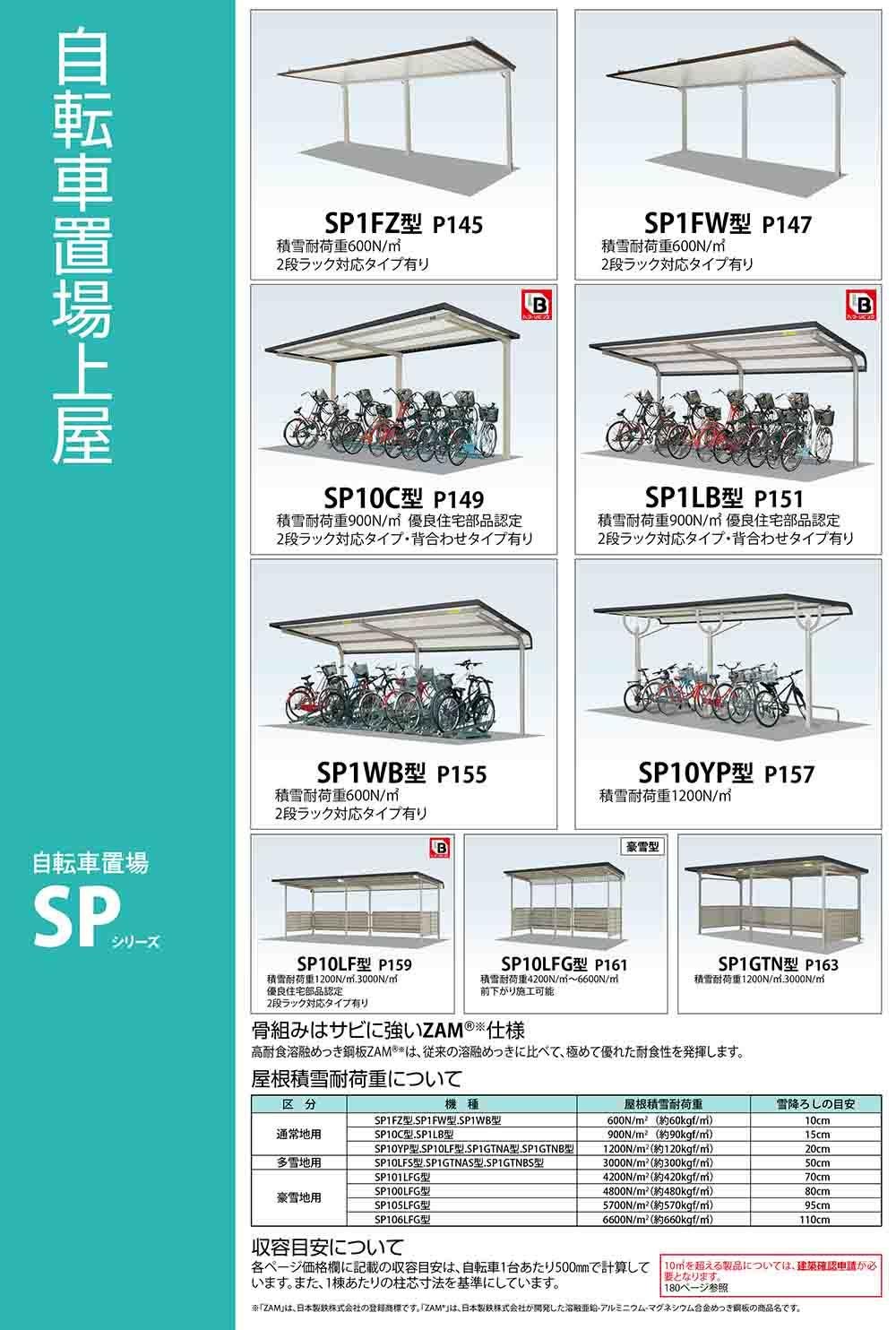 自転車置場上屋 SP10YP型 SP101YP-L プレート仕様 追加棟 収容目安4台 一般型 間口2250×奥行2000×高さ2283