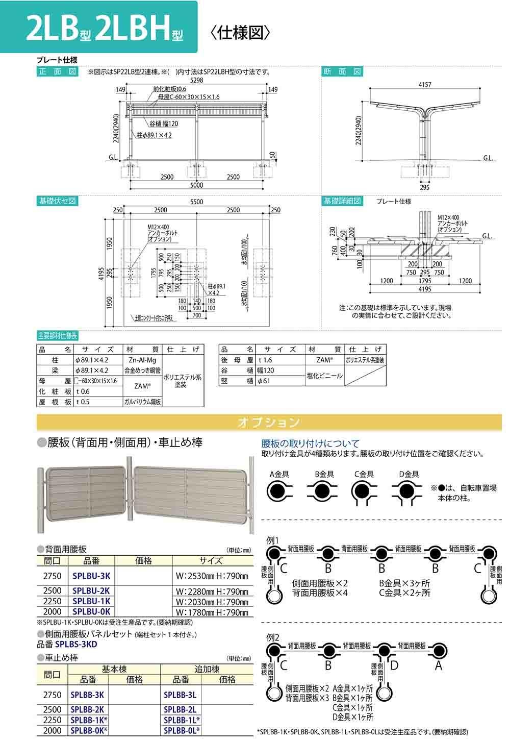 自転車置場上屋 SP1LB型 SP11LB-L プレート仕様 追加棟 収容目安4台 一般型 間口2250×奥行2071×高さ2240