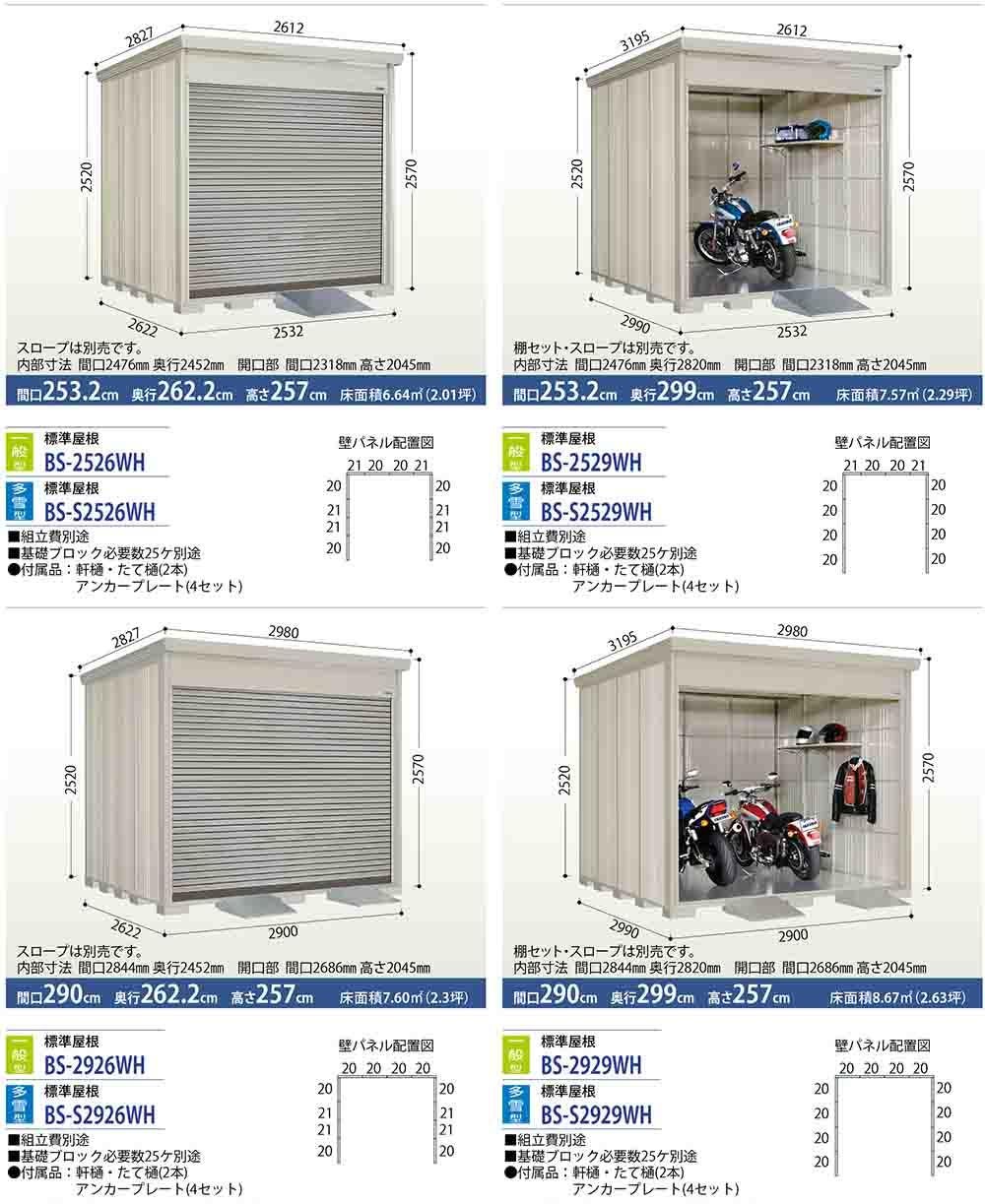 Mr.シャッターマン ダンディ 中型物置 WSB-S2926H 標準屋根 基本棟 多雪型 間口2900×奥行2622×高さ2110