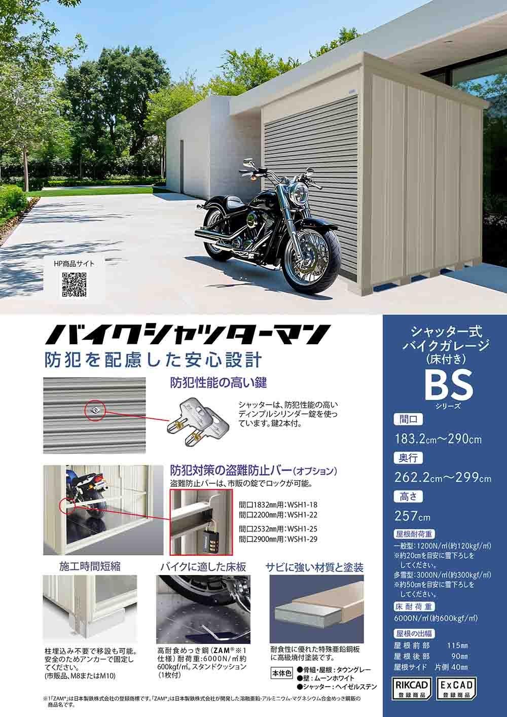 Mr.シャッターマン ダンディ 中型物置 WS-S2529H 標準屋根 基本棟 多雪型 間口2532×奥行2990×高さ2570