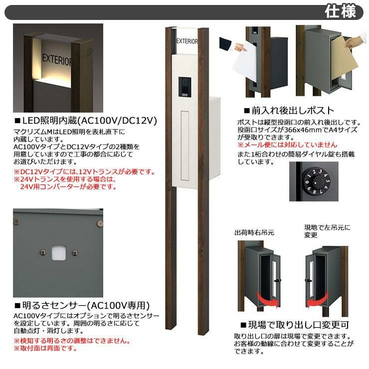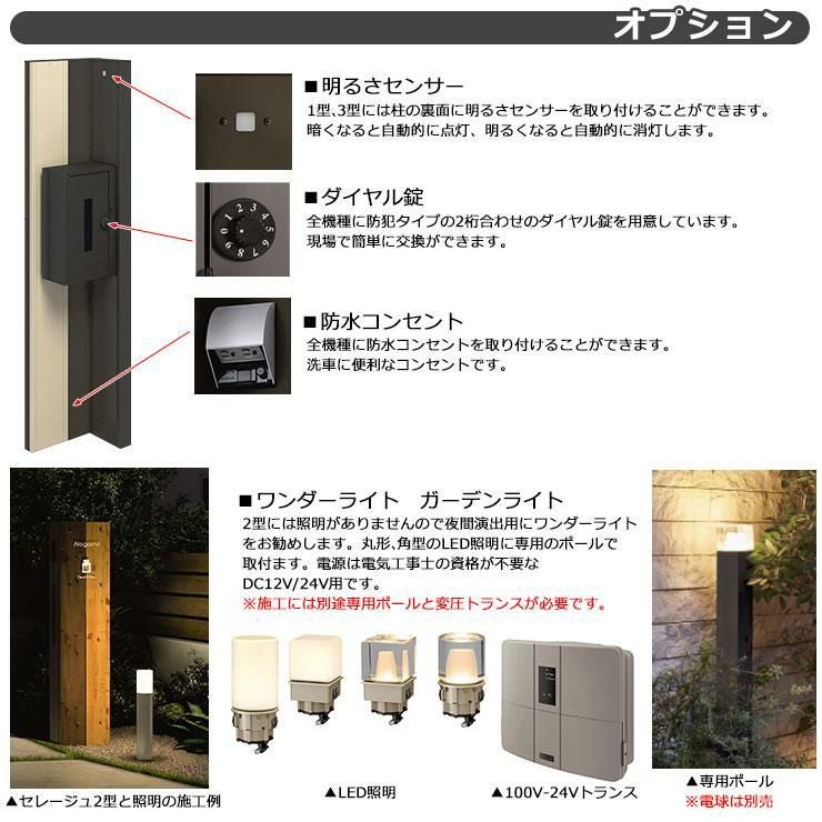 機能門柱 本体+ポスト+照明+アクリル表札+ネームシール付属
