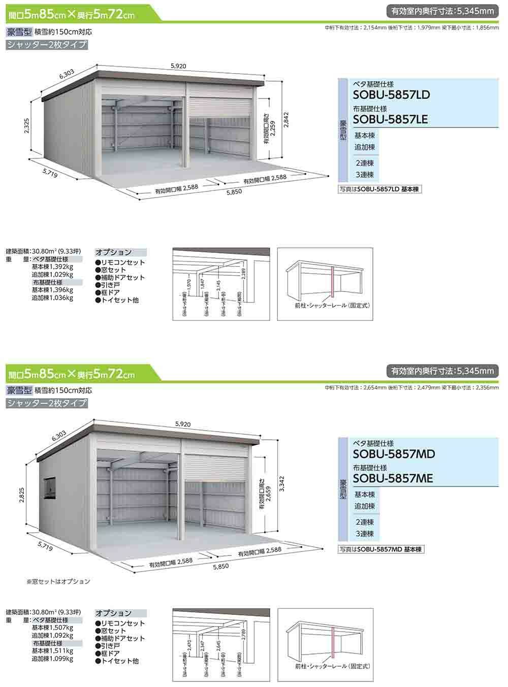ヨド倉庫 SOBU-3057MD ベタ基礎仕様 追加棟 豪雪型 間口3050×奥行5719×高さ3342