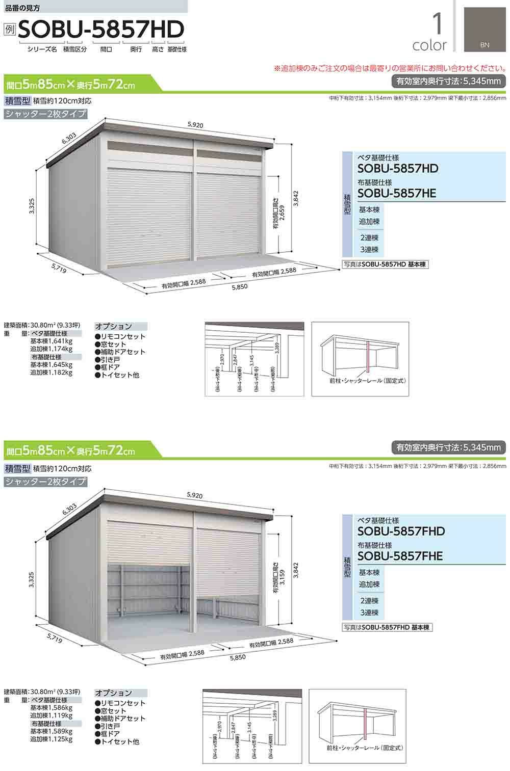 ヨド倉庫 SOB-5857FHD ベタ基礎仕様 追加棟 一般A 間口5850×奥行5719×高さ3780