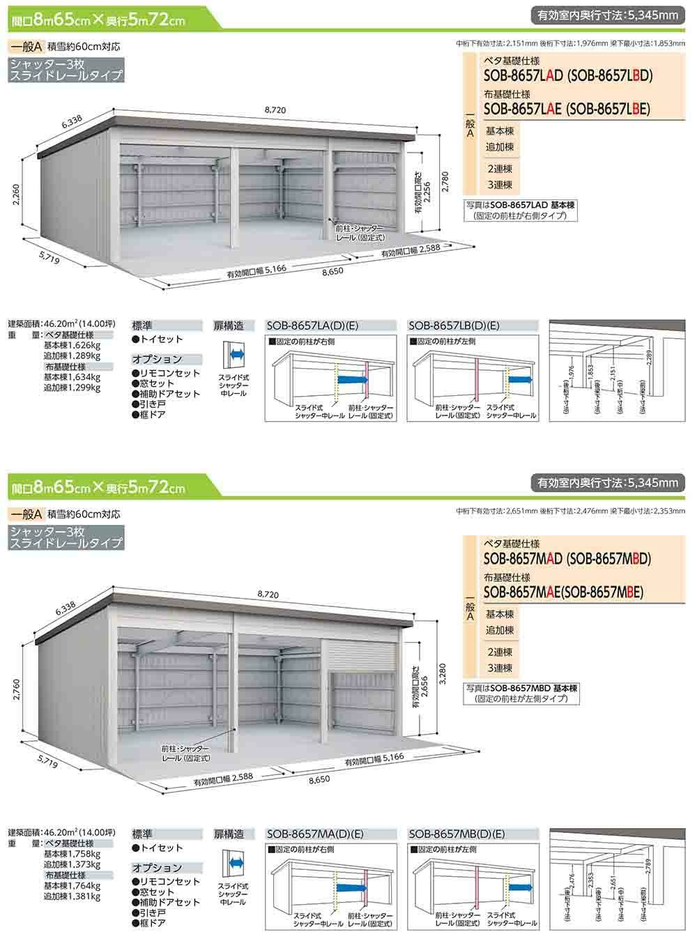 ヨド倉庫 SOB-5883MD ベタ基礎仕様 追加棟 一般A 間口5850×奥行8319×高さ3280