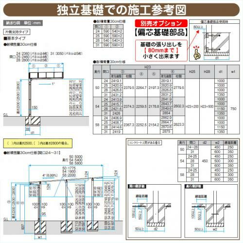 スカイリード 片側支持・奥行2連結タイプ H23 呼称:50・5824 形材屋根枠(パネル材質:ポリカーボネート板) 耐風圧強度:風速42m/s相当