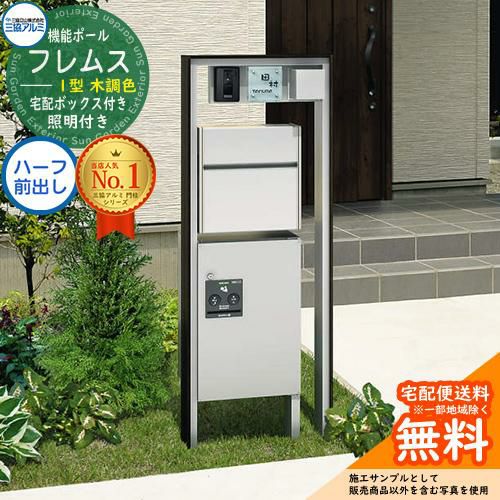 機能ポール フレムス Classic(クラシック) 1型 Aセット 木調+アルミ形材 宅配ボックス:ハーフ 前入れ前出し
