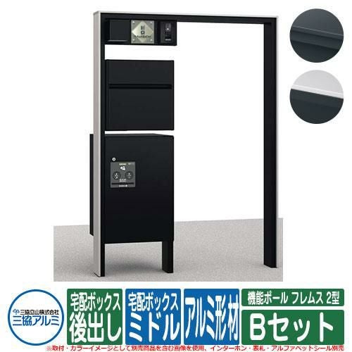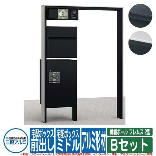 機能ポール フレムス Classic(クラシック) 2型 Bセット アルミ形材 宅配ボックス:ミドル 前入れ前出し