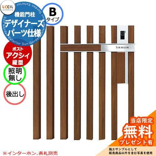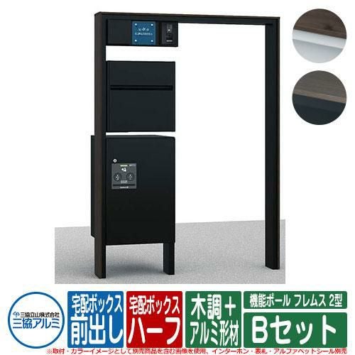 機能ポール フレムス Classic(クラシック) 2型 Bセット 木調+アルミ形材 宅配ボックス:ハーフ 前入れ前出し