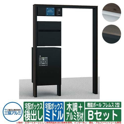 機能ポール フレムス Classic(クラシック) 2型 Bセット 木調+アルミ形材 宅配ボックス:ミドル 前入れ前出し