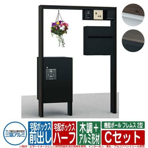 機能ポール フレムス Classic(クラシック) 2型 Cセット 木調+アルミ形材 宅配ボックス:ハーフ 前入れ前出し