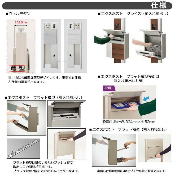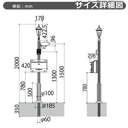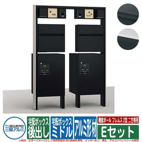 機能ポール フレムス Classic(クラシック) 2型 二世帯用 Eセット アルミ形材 宅配ボックス:ハーフ 前入れ前出し