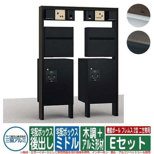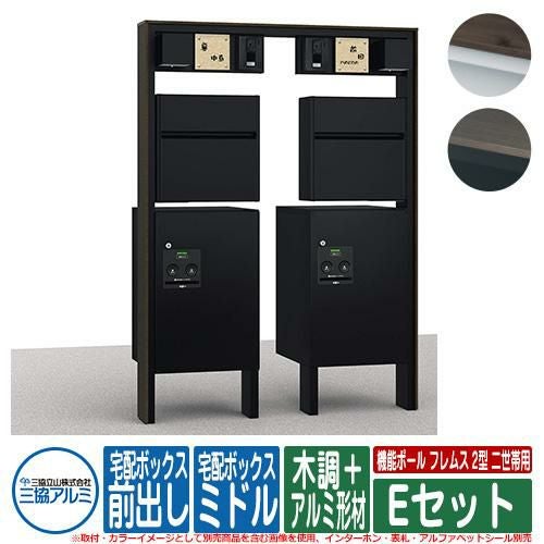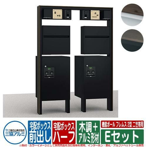 機能ポール フレムス Classic(クラシック) 2型 二世帯用 Eセット 木調+アルミ形材 宅配ボックス:ハーフ 前入れ前出し