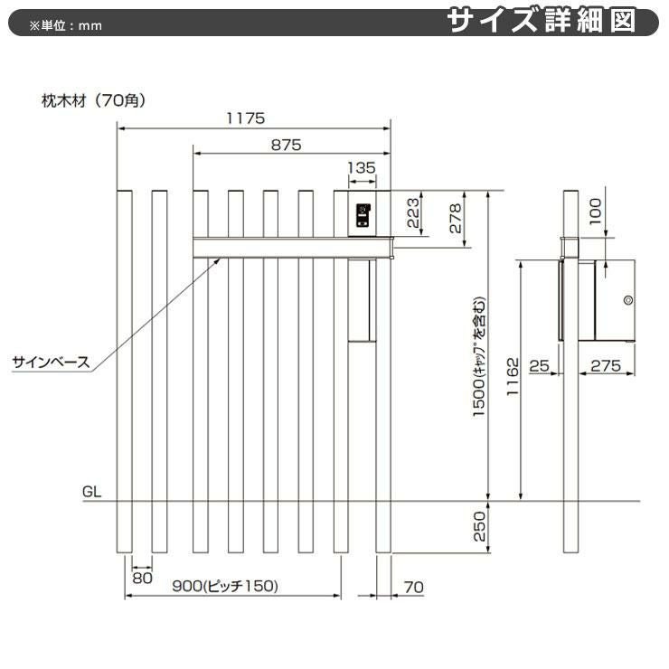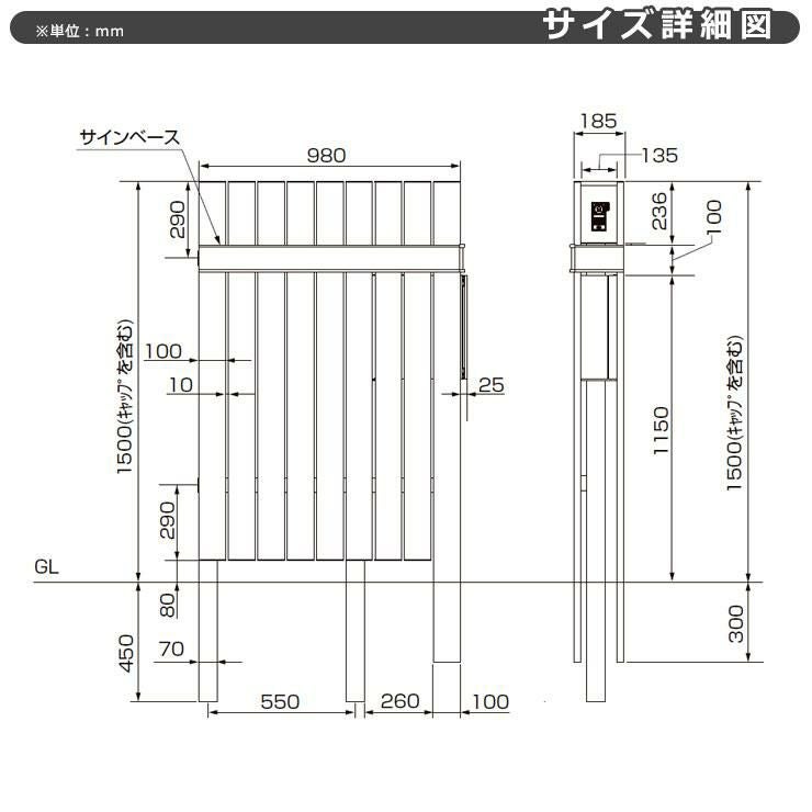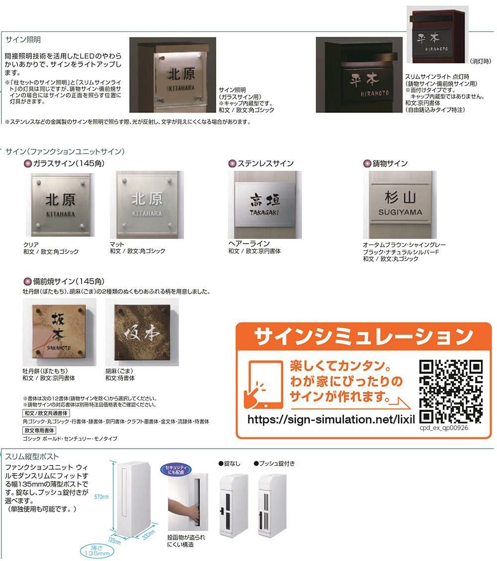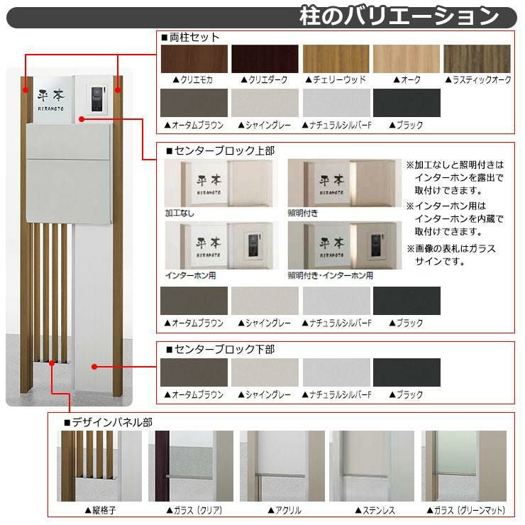柱+ポスト+照明付き+ガラスサイン+縦格子