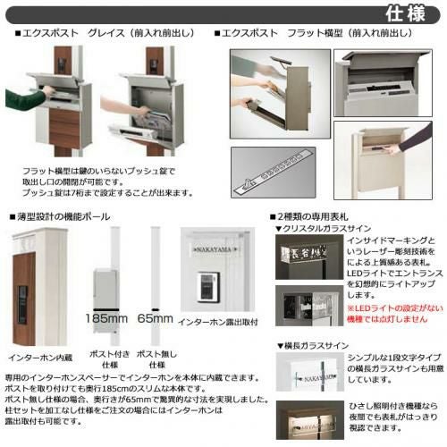 柱+ポスト+照明付き+ガラスサイン+ガラスパネル