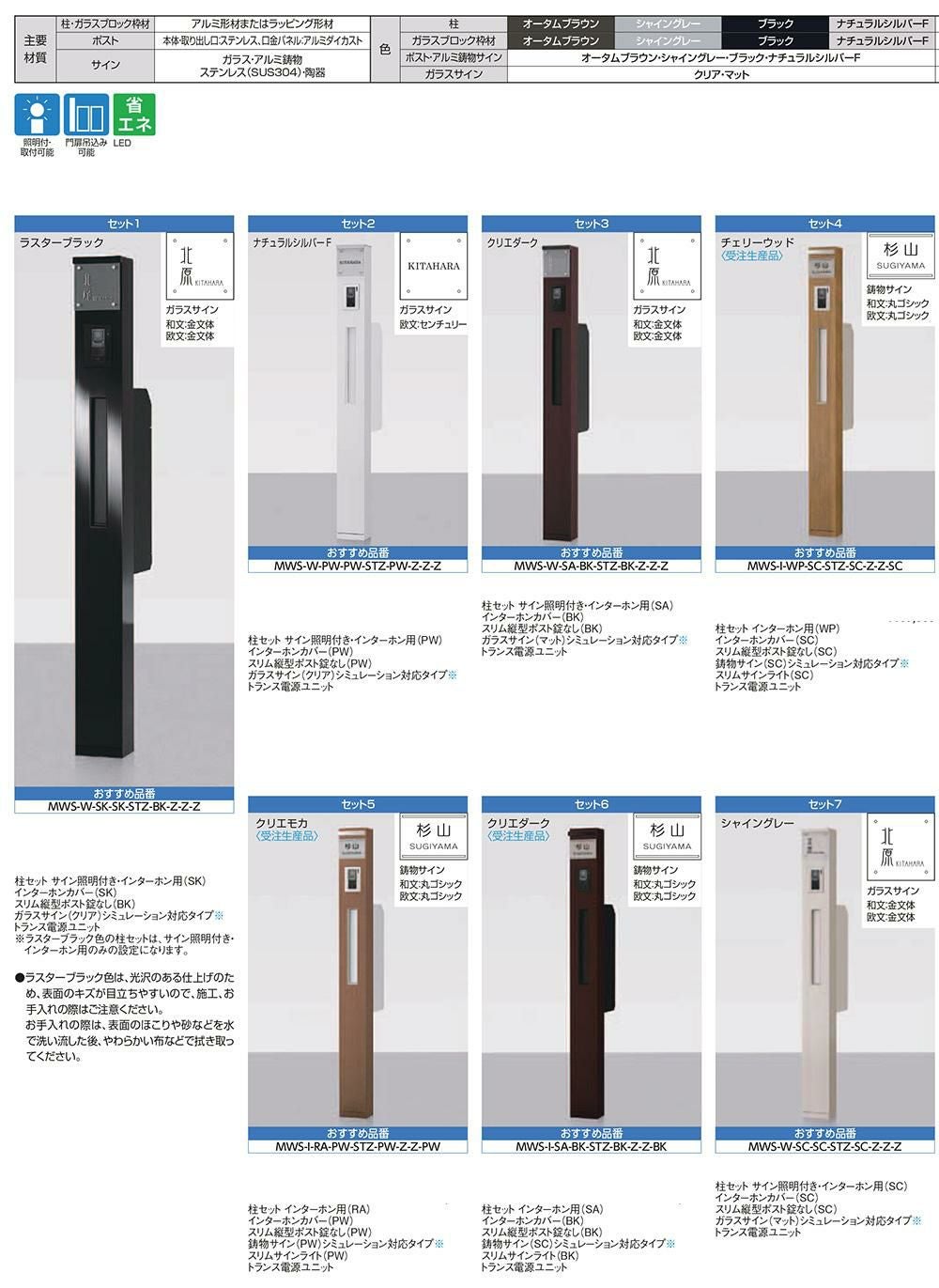 柱+ポスト+照明付き+ガラスサイン+ガラスブロック(オバリーン)